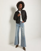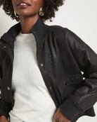 With a soft faux suede finish, knit trim, and snap-up details, this bomber was made for leaving town—or just looking like you might. Pairs best with denim and a disappearing act.