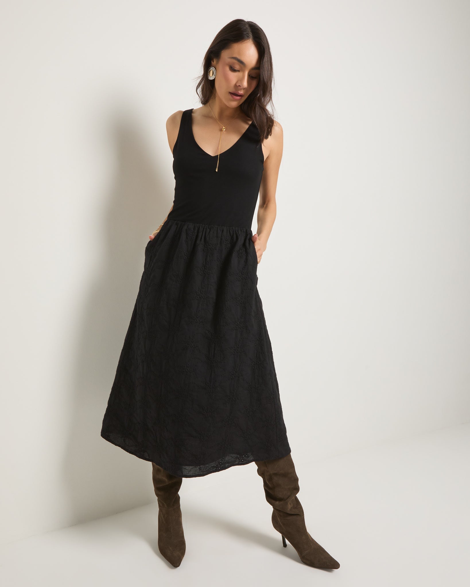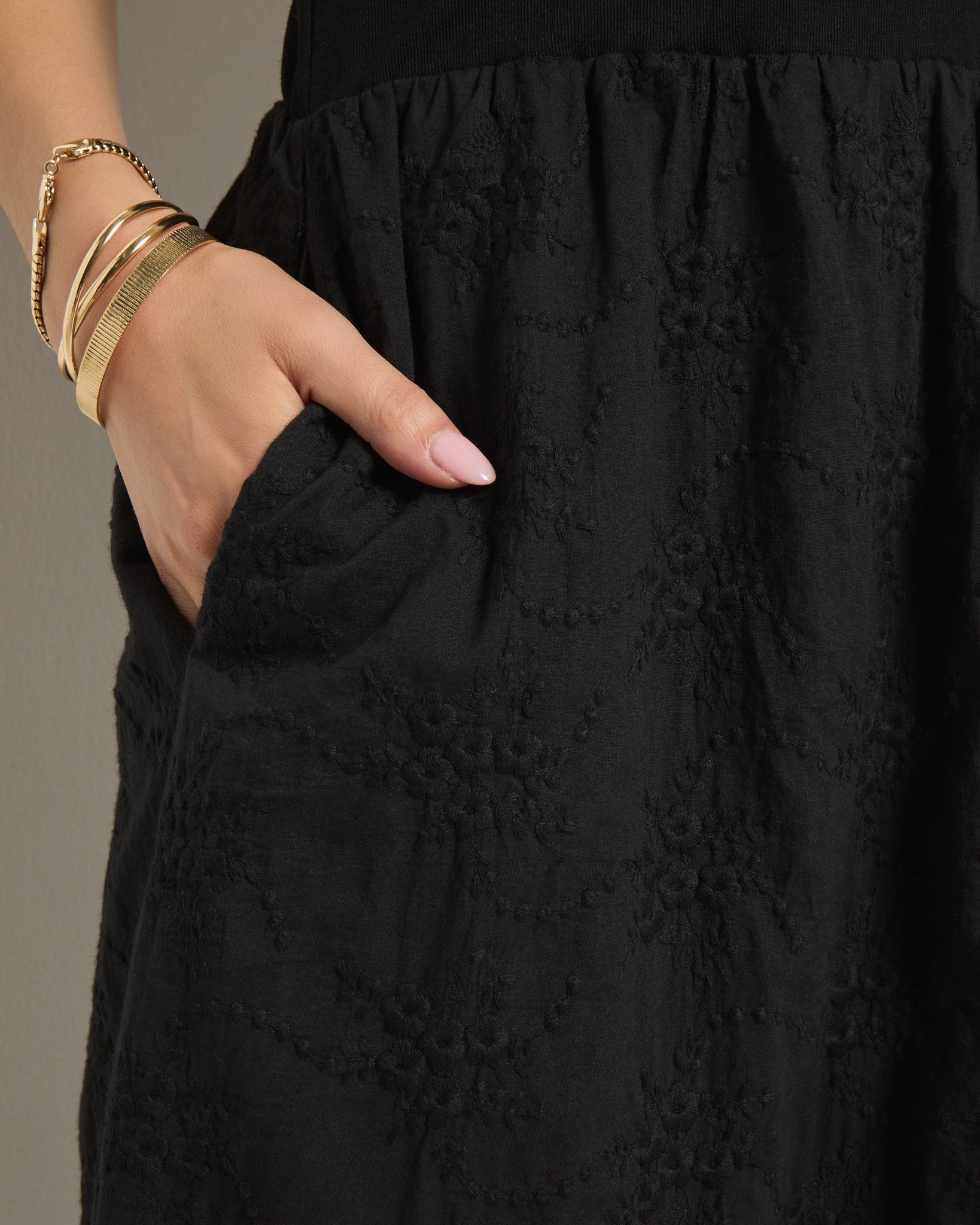 From trail rides to taco nights. This midi’s got soft structure, floral embroidery, and an easy waistband that flatters without fuss. Oh, and pockets—because duh.