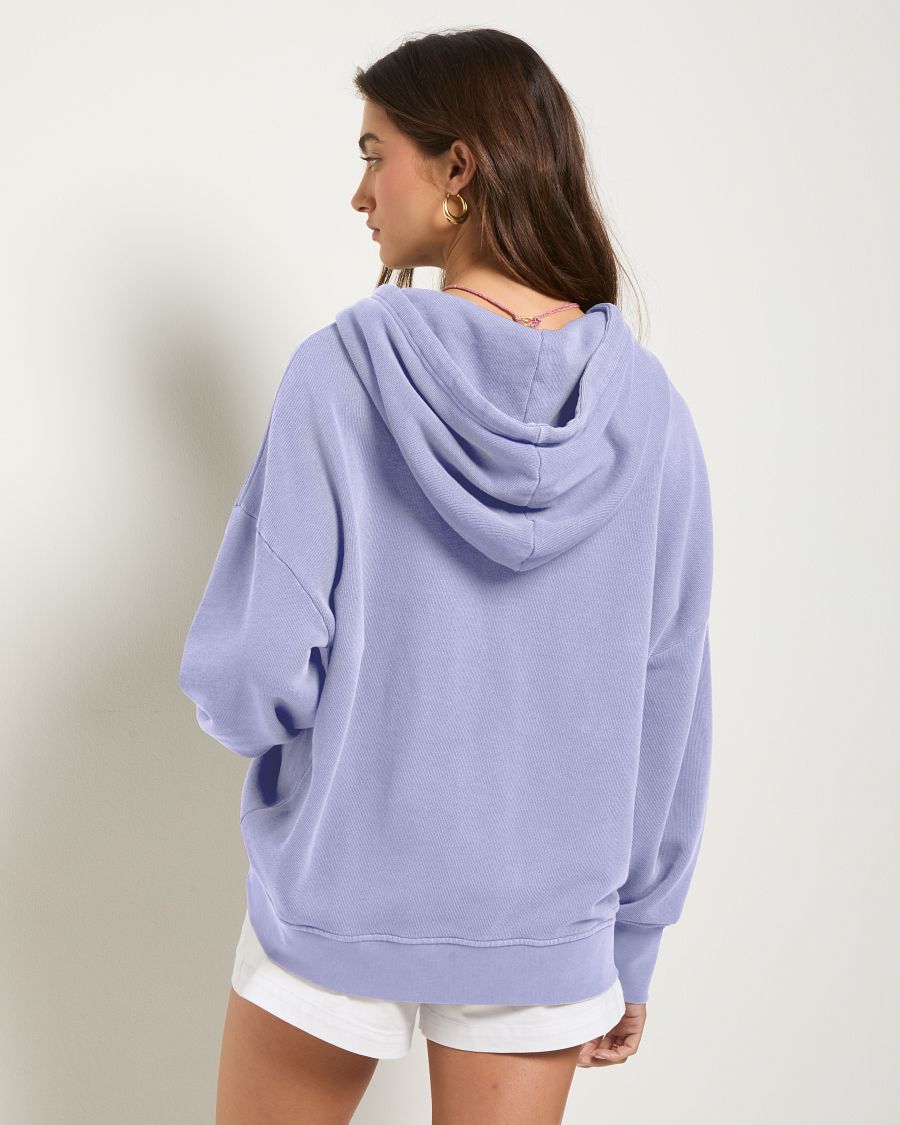Softer than that hoodie you “borrowed” and never gave back. This mineral-washed hoodie brings vintage vibes with its oversized fit, dropped shoulders, and classic kangaroo pocket. Made from plush 100% cotton fleece, it’s perfect for bayside breezes and beyond.
