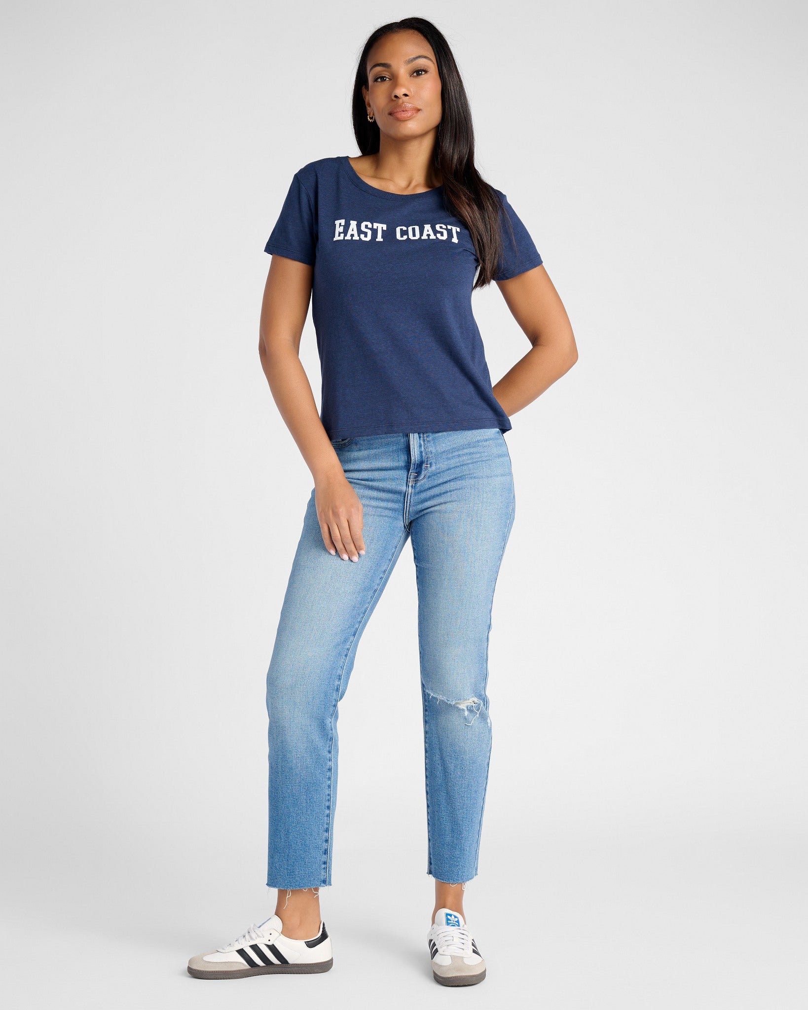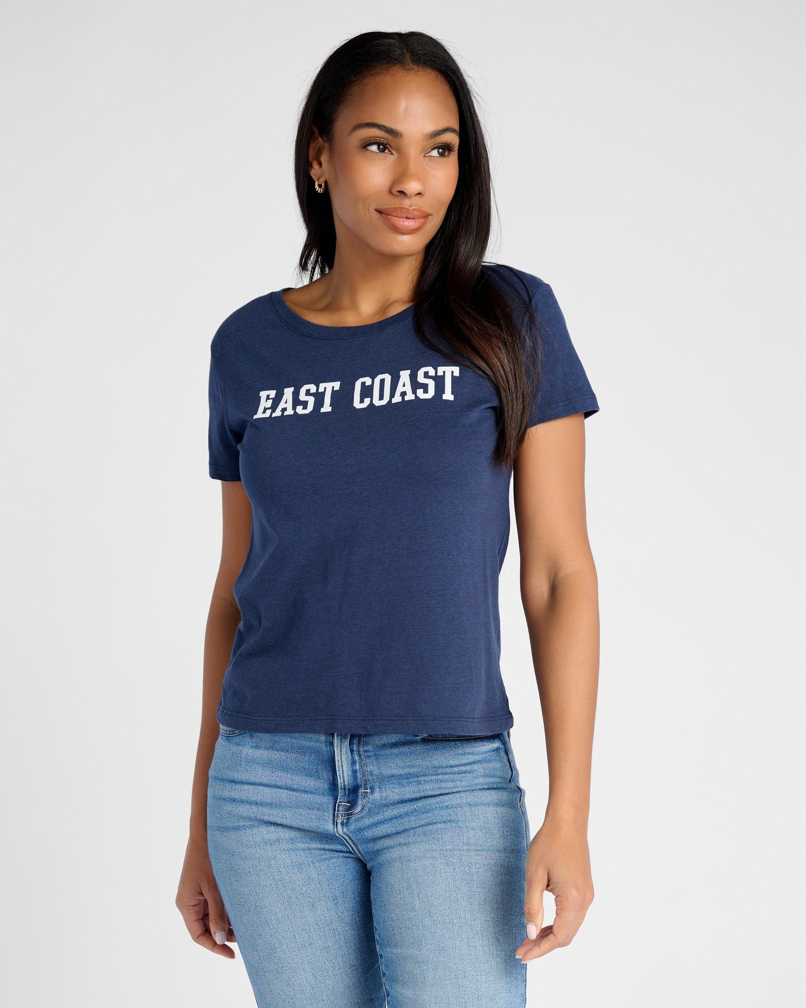 For the other coast, with love. This crew neck graphic tee is made in the USA and designed with an easy fit that flatters like your favorite vintage find. We’re West Coast-based—but we had to give a nod to the East.