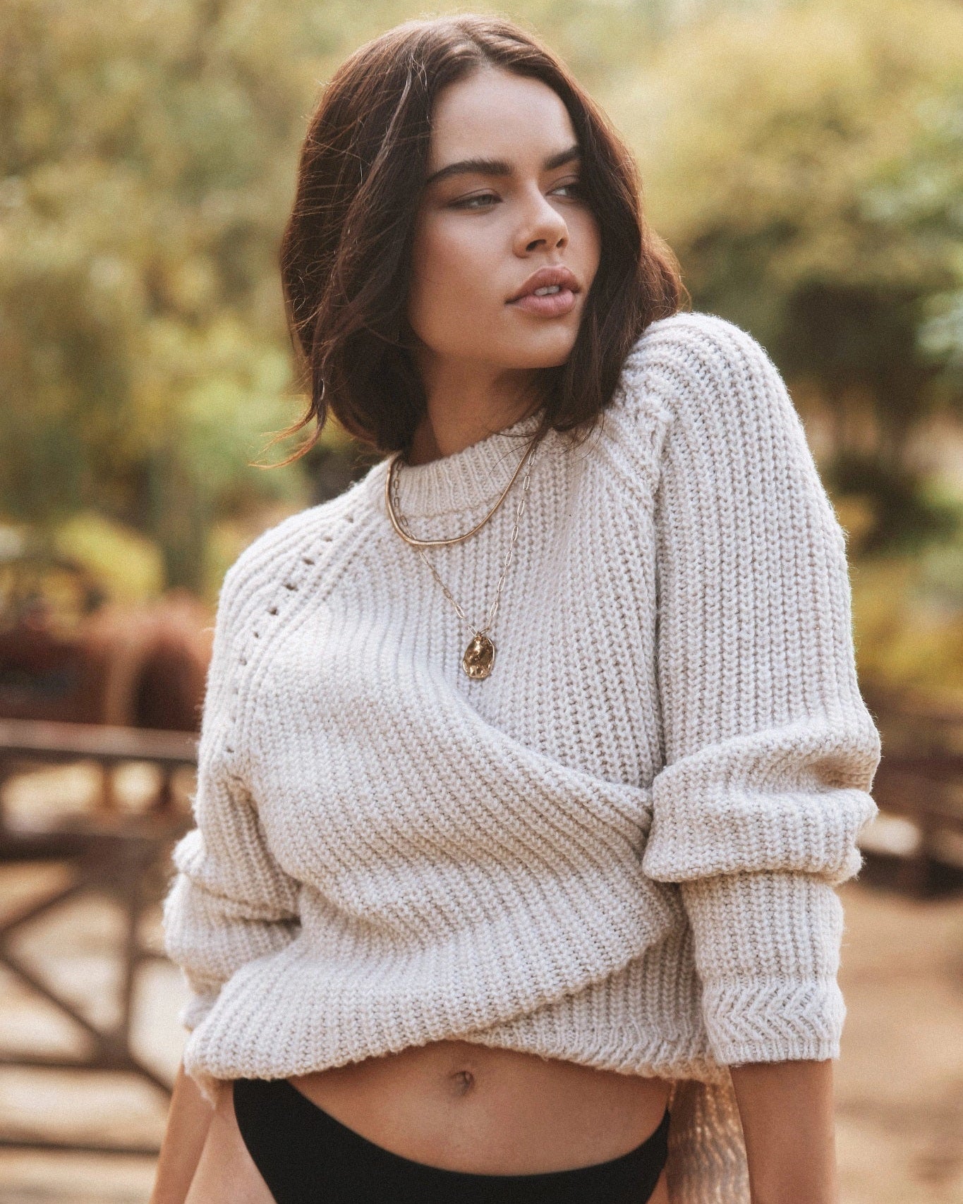 For sunset drives and stargazing stops. With raglan sleeves, a cozy texture, and chevron detail at the hem, this sweater’s got just enough western grit to ride along—and it’s made with recycled fibers, too.