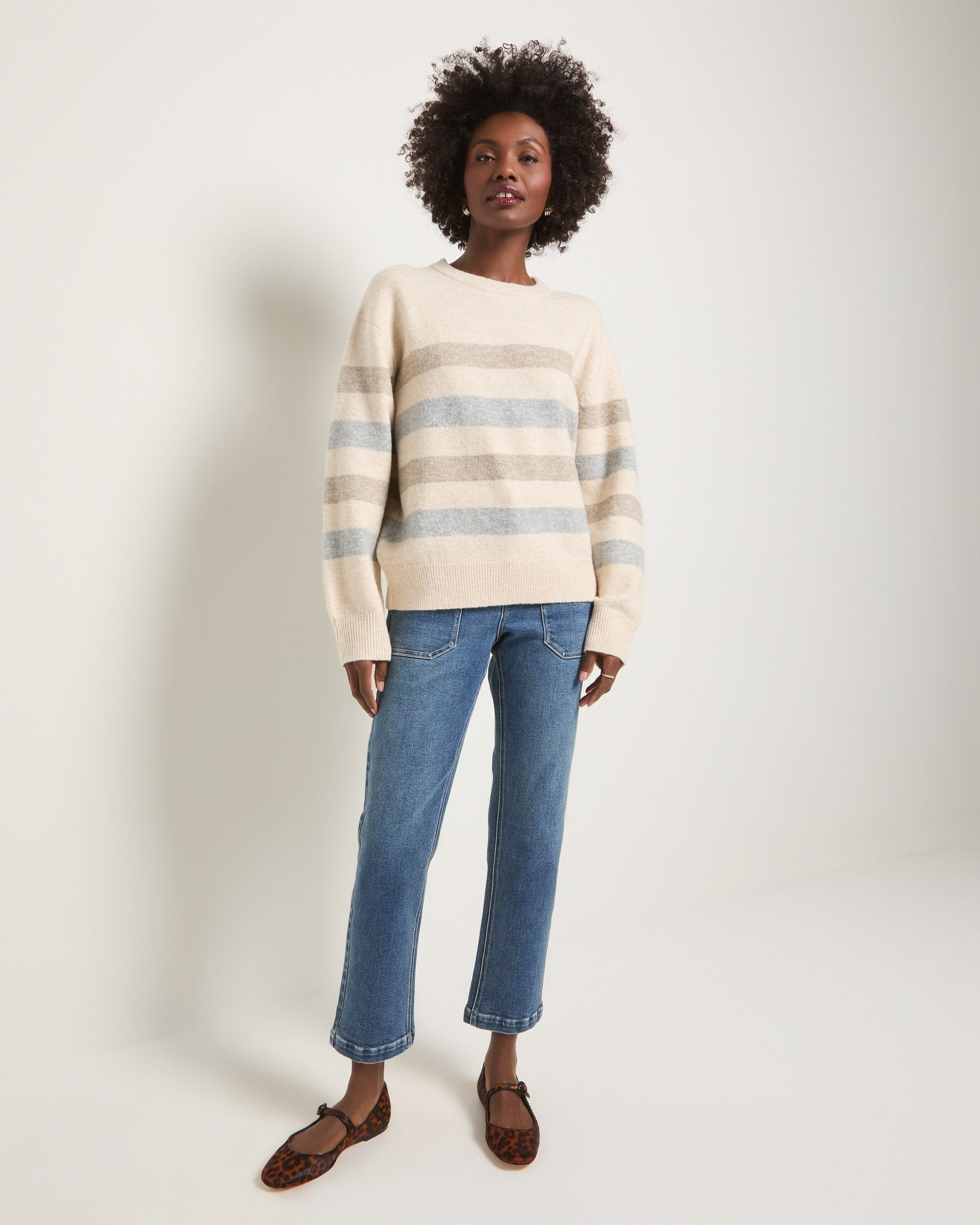 A laidback sweater with wide contrast stripes and a chill, vintage feel. Ribbed neckline, cuffs, and hem keep the shape, while the fit stays relaxed whether you’re working from home or wandering through the farmers market.