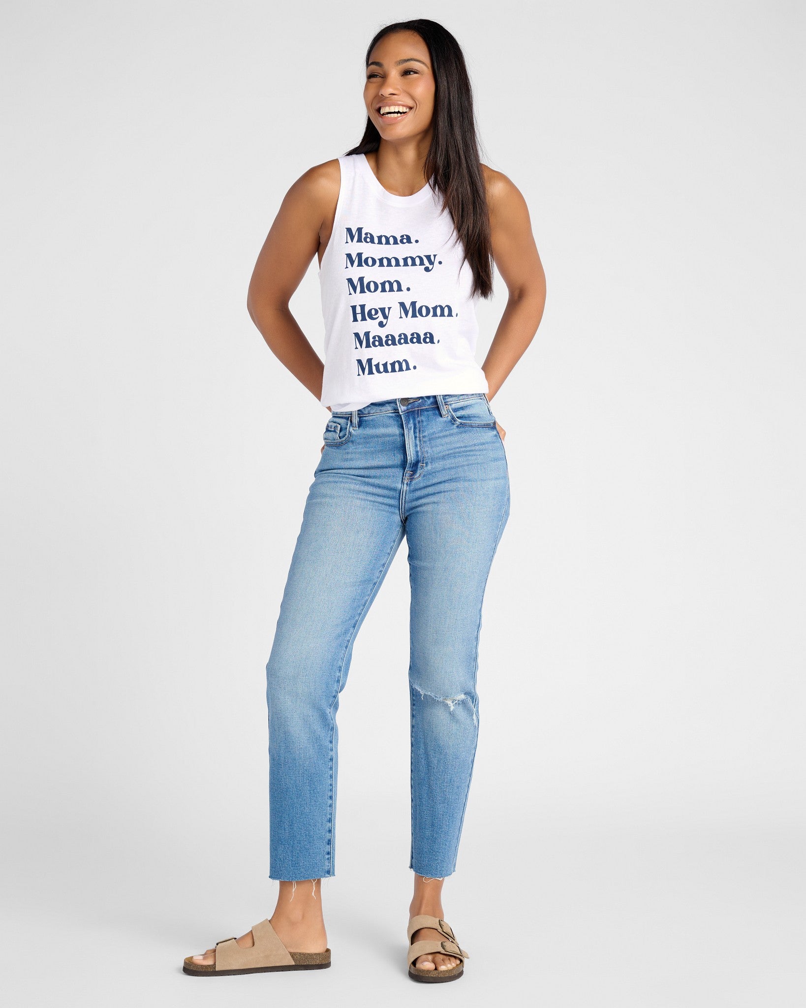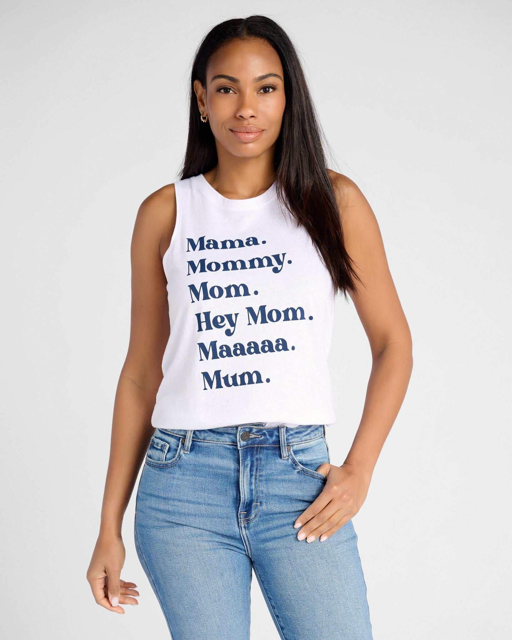 Because a mom’s name is never just said once. This crew neck tank keeps it real with a playful graphic that every mom knows all too well. Designed with a relaxed fit and a rounded hem, it’s soft, easy, and ready for whatever (or whoever) calls your name next.