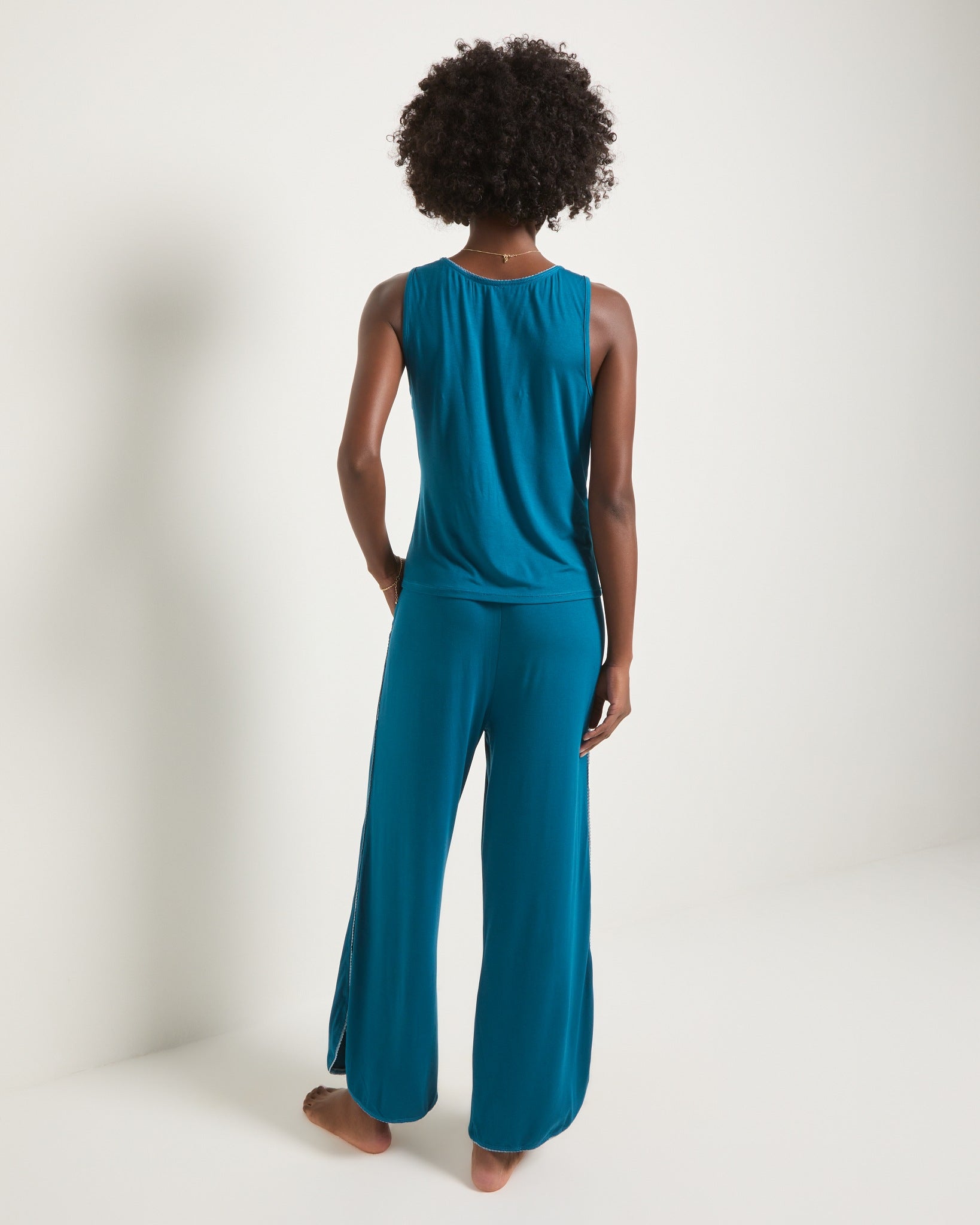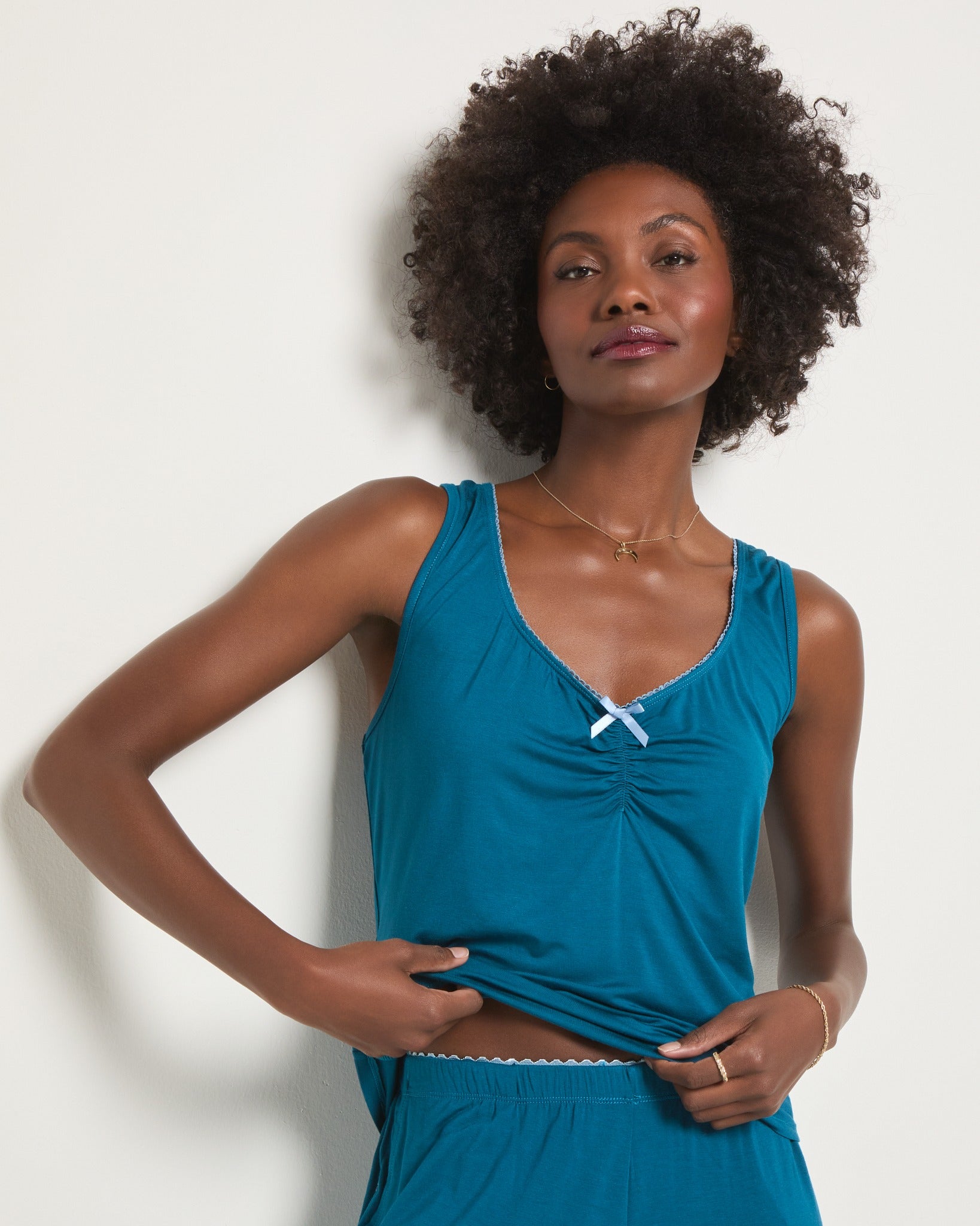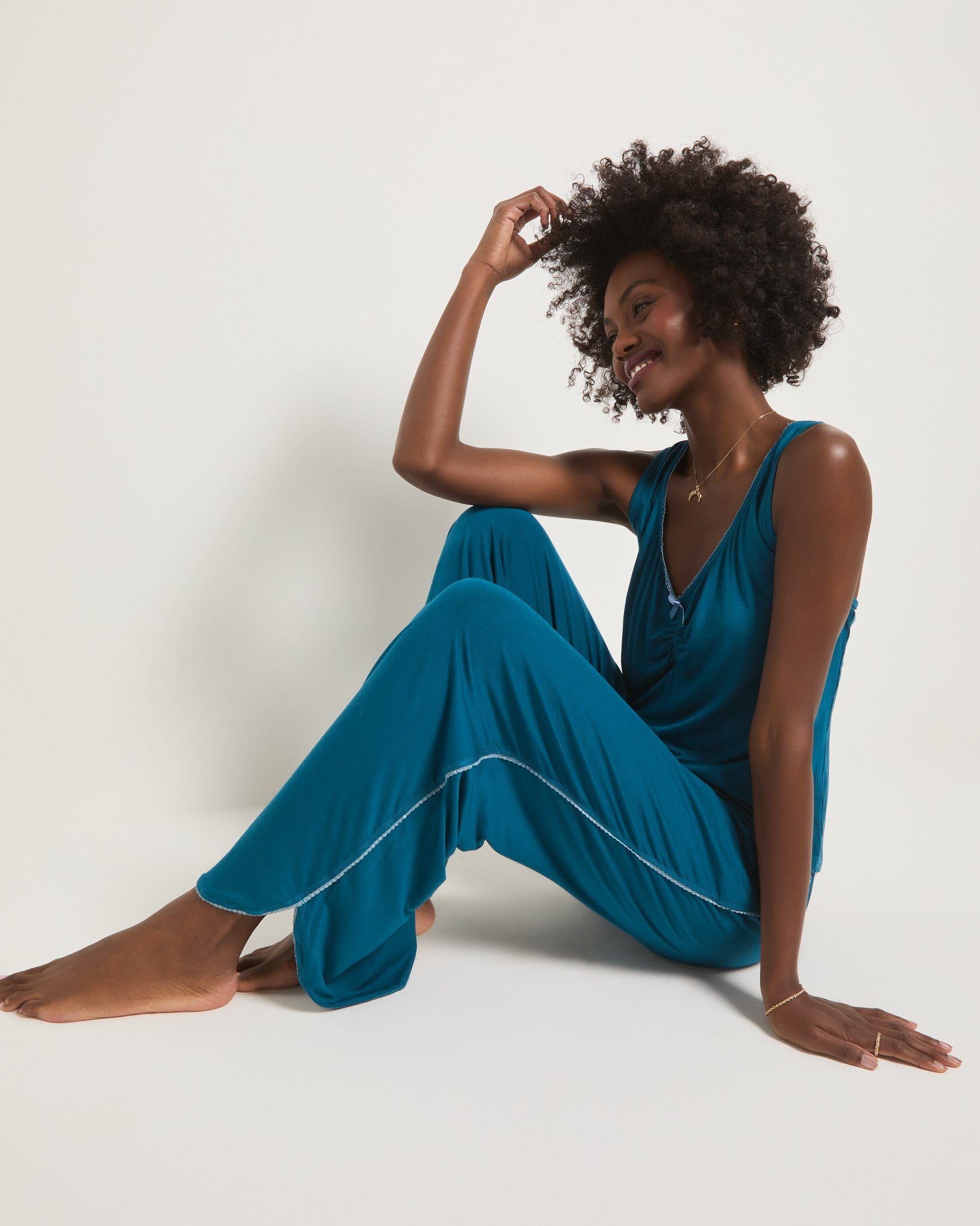 Scalloped lace, a touch of ruching, and tulip hems that sway with every step. Whether you’re drifting from room to room or city to city, this lounge set travels well.