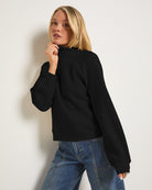 A plush fleece layer with a relaxed fit and mock neck for cozy nights under open skies. Raglan sleeves and ribbed trim add classic detail. Perfect for those slow-burning campfire chats.